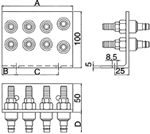 No. of conn. | Size. | A | B | C | D | Conn. size | Part no. |